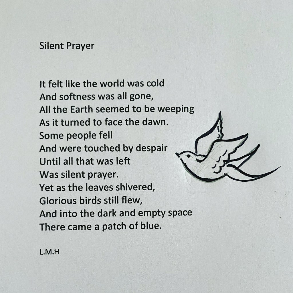 I’m thinking about how we look after ourselves and give our best to the world when we get caught up in the hurly-burly of everyday living, but also, and more importantly, how we cope when we are knocked sideways by awful events going on around us, both in our personal lives and further afield.